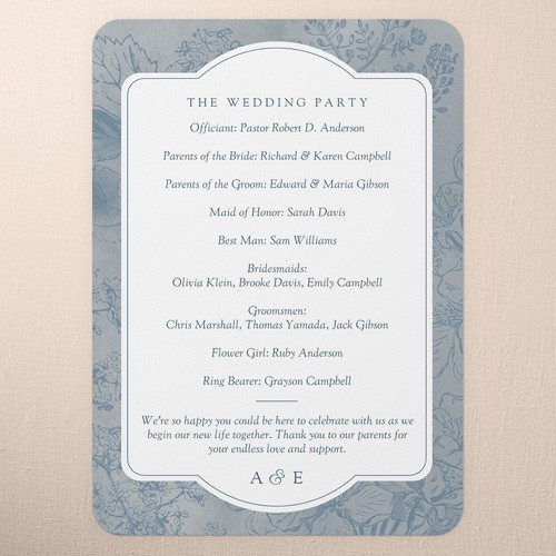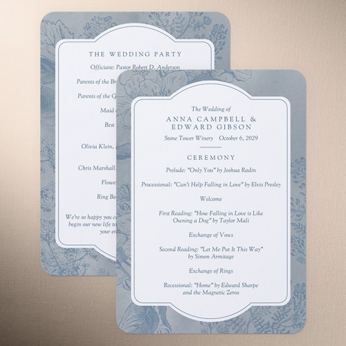 Share all the details of your big day with a personalized program that's sure to impress your, guests. It's the perfect way to make them feel more a part of the ceremony. Select a program, that coordinates with your invitations, RSVP cards, place cards and more.