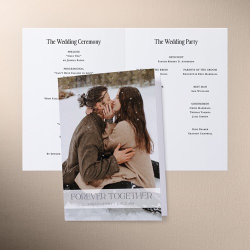 Share all the details of your big day with a personalized program that’s sure to impress your guests. It’s the perfect way to make them feel more a part of the ceremony. Select a program that coordinates with your invitations, RSVP cards, place cards and more.