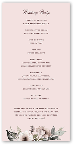 Share all the details of your big day with a personalized program that's sure to impress your, guests. It's the perfect way to make them feel more a part of the ceremony. Select a program, that coordinates with your invitations, RSVP cards, place cards and more.