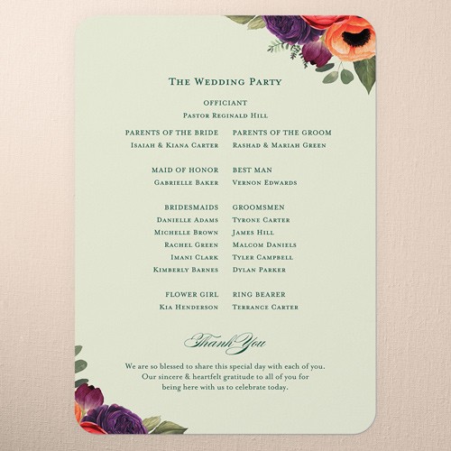 Share all the details of your big day with a personalized program that's sure to impress your, guests. It's the perfect way to make them feel more a part of the ceremony. Select a program, that coordinates with your invitations, RSVP cards, place cards and more.