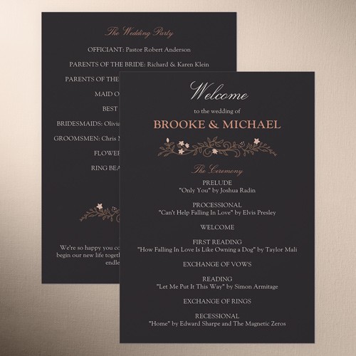 Share all the details of your big day with a personalized program that's sure to impress your, guests. It's the perfect way to make them feel more a part of the ceremony. Select a program, that coordinates with your invitations, RSVP cards, place cards and more.