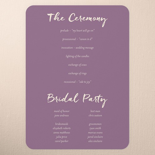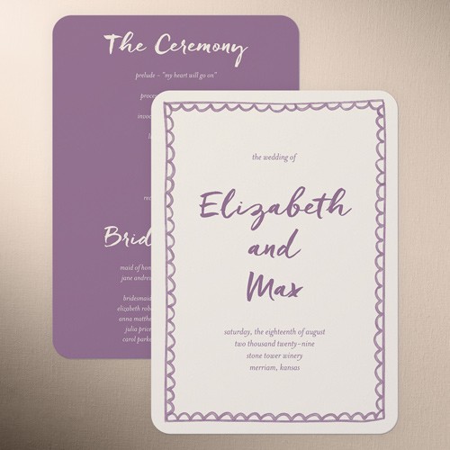 Share all the details of your big day with a personalized program that's sure to impress your, guests. It's the perfect way to make them feel more a part of the ceremony. Select a program, that coordinates with your invitations, RSVP cards, place cards and more.