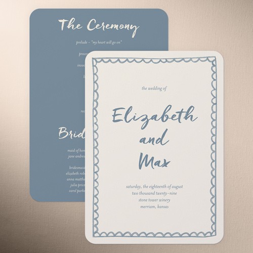 Share all the details of your big day with a personalized program that's sure to impress your, guests. It's the perfect way to make them feel more a part of the ceremony. Select a program, that coordinates with your invitations, RSVP cards, place cards and more.