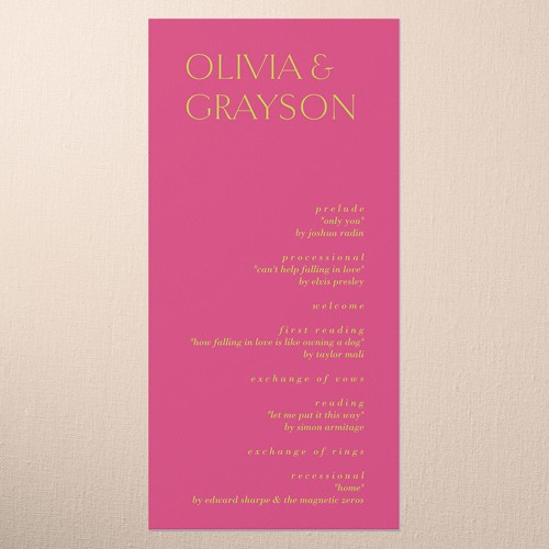 Share all the details of your big day with a personalized program that's sure to impress your, guests. It's the perfect way to make them feel more a part of the ceremony. Select a program, that coordinates with your invitations, RSVP cards, place cards and more.