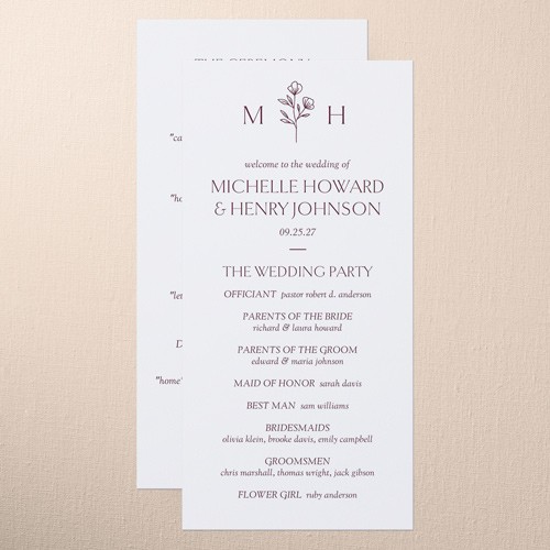 Share all the details of your big day with a personalized program that's sure to impress your, guests. It's the perfect way to make them feel more a part of the ceremony. Select a program, that coordinates with your invitations, RSVP cards, place cards and more.