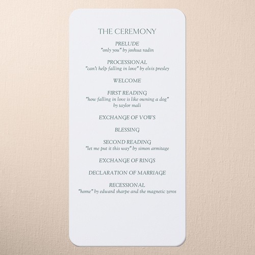 Share all the details of your big day with a personalized program that's sure to impress your, guests. It's the perfect way to make them feel more a part of the ceremony. Select a program, that coordinates with your invitations, RSVP cards, place cards and more.