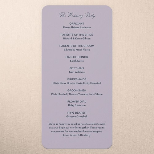 Share all the details of your big day with a personalized program that's sure to impress your, guests. It's the perfect way to make them feel more a part of the ceremony. Select a program, that coordinates with your invitations, RSVP cards, place cards and more.