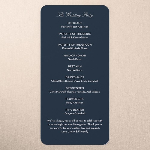 Share all the details of your big day with a personalized program that's sure to impress your, guests. It's the perfect way to make them feel more a part of the ceremony. Select a program, that coordinates with your invitations, RSVP cards, place cards and more.