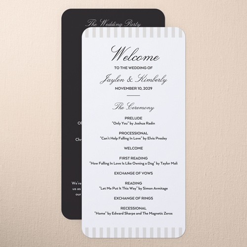 Share all the details of your big day with a personalized program that's sure to impress your, guests. It's the perfect way to make them feel more a part of the ceremony. Select a program, that coordinates with your invitations, RSVP cards, place cards and more.