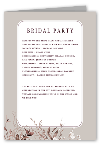 Share all the details of your big day with a personalized program that's sure to impress your, guests. It's the perfect way to make them feel more a part of the ceremony. Select a program, that coordinates with your invitations, RSVP cards, place cards and more.