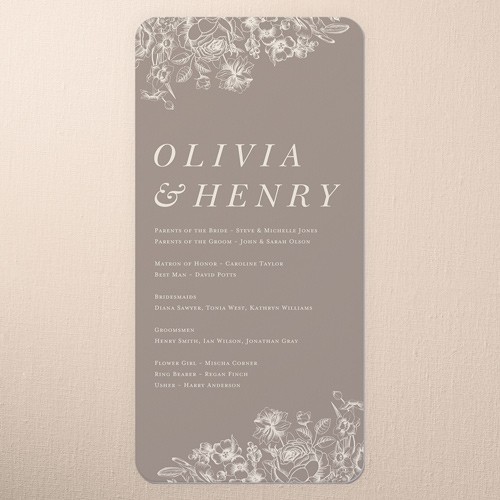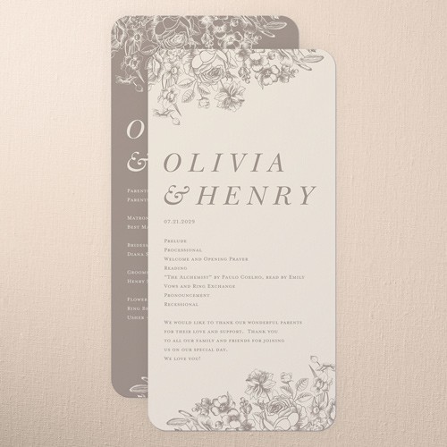 Share all the details of your big day with a personalized program that’s sure to impress your guests. It’s the perfect way to make them feel more a part of the ceremony. Select a program that coordinates with your invitations, RSVP cards, place cards and more.