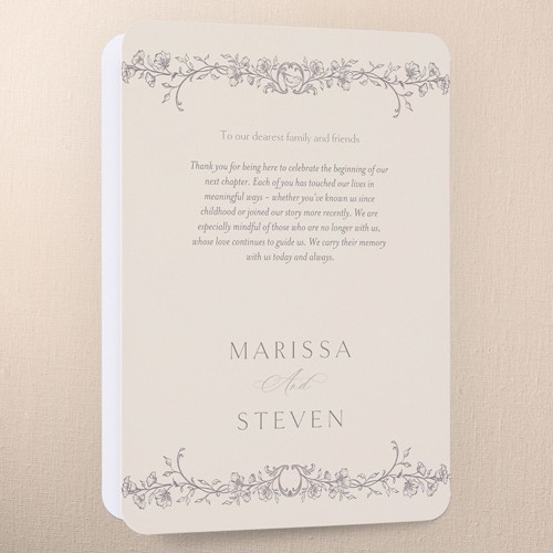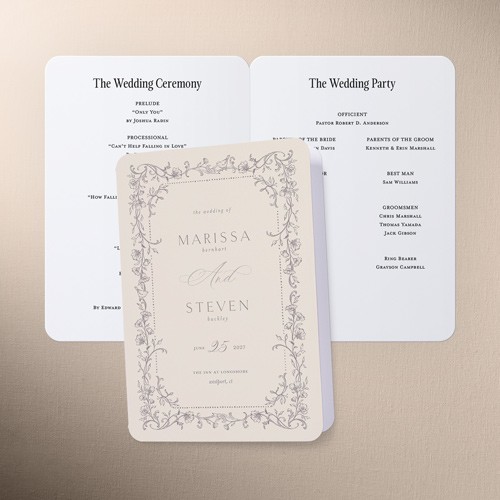 Share all the details of your big day with a personalized program that's sure to impress your, guests. It's the perfect way to make them feel more a part of the ceremony. Select a program, that coordinates with your invitations, RSVP cards, place cards and more.