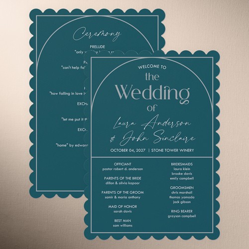 Share all the details of your big day with a personalized program that’s sure to impress your guests. It’s the perfect way to make them feel more a part of the ceremony. Select a program that coordinates with your invitations, RSVP cards, place cards and more.