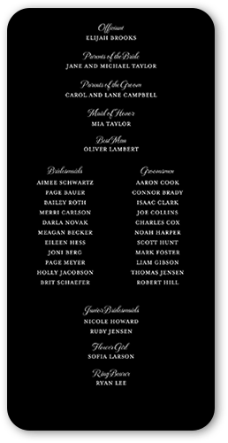 Share all the details of your big day with a personalized program that's sure to impress your, guests. It's the perfect way to make them feel more a part of the ceremony. Select a program, that coordinates with your invitations, RSVP cards, place cards and more.