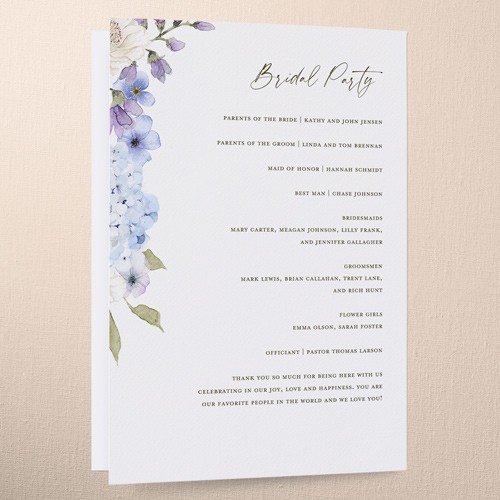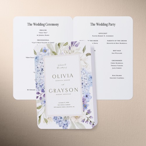 Share all the details of your big day with a personalized program that's sure to impress your, guests. It's the perfect way to make them feel more a part of the ceremony. Select a program, that coordinates with your invitations, RSVP cards, place cards and more.