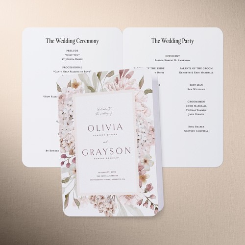 Share all the details of your big day with a personalized program that's sure to impress your, guests. It's the perfect way to make them feel more a part of the ceremony. Select a program, that coordinates with your invitations, RSVP cards, place cards and more.