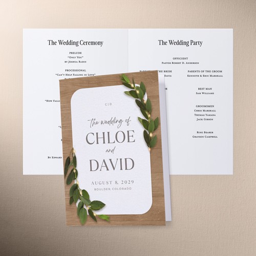 Share all the details of your big day with a personalized program that's sure to impress your, guests. It's the perfect way to make them feel more a part of the ceremony. Select a program, that coordinates with your invitations, RSVP cards, place cards and more.