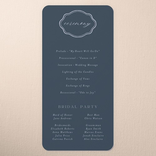 Share all the details of your big day with a personalized program that's sure to impress your, guests. It's the perfect way to make them feel more a part of the ceremony. Select a program, that coordinates with your invitations, RSVP cards, place cards and more.