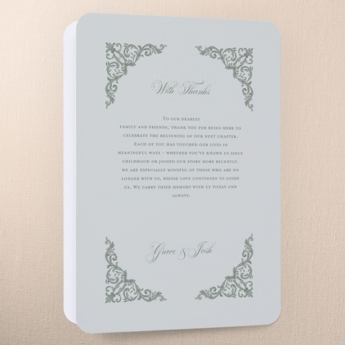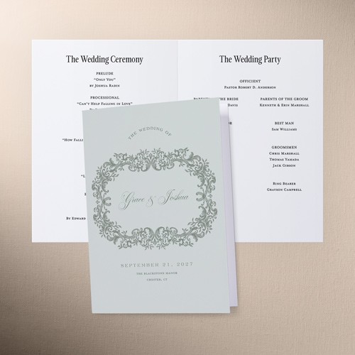 Share all the details of your big day with a personalized program that's sure to impress your, guests. It's the perfect way to make them feel more a part of the ceremony. Select a program, that coordinates with your invitations, RSVP cards, place cards and more.