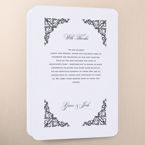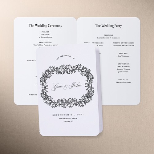 Share all the details of your big day with a personalized program that's sure to impress your, guests. It's the perfect way to make them feel more a part of the ceremony. Select a program, that coordinates with your invitations, RSVP cards, place cards and more.