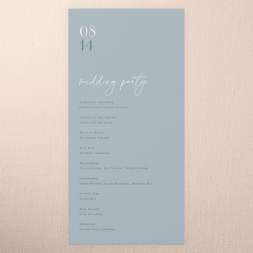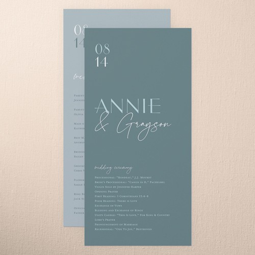 Share all the details of your big day with a personalized program that's sure to impress your, guests. It's the perfect way to make them feel more a part of the ceremony. Select a program, that coordinates with your invitations, RSVP cards, place cards and more.