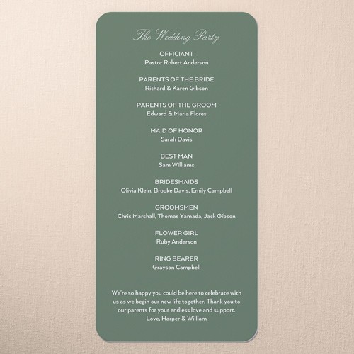 Share all the details of your big day with a personalized program that’s sure to impress your guests. It’s the perfect way to make them feel more a part of the ceremony. Select a program that coordinates with your invitations, RSVP cards, place cards and more.