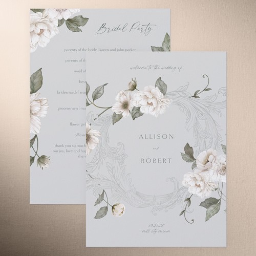 Share all the details of your big day with a personalized program that's sure to impress your, guests. It's the perfect way to make them feel more a part of the ceremony. Select a program, that coordinates with your invitations, RSVP cards, place cards and more.