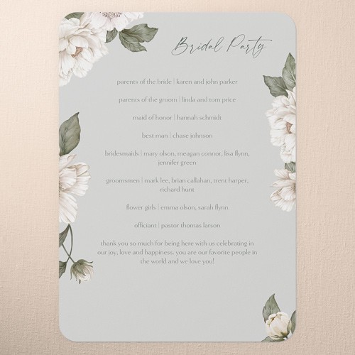 Share all the details of your big day with a personalized program that's sure to impress your, guests. It's the perfect way to make them feel more a part of the ceremony. Select a program, that coordinates with your invitations, RSVP cards, place cards and more.