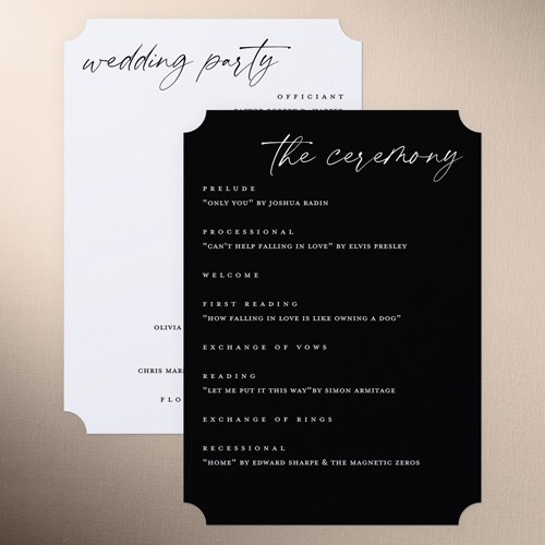 Share all the details of your big day with a personalized program that's sure to impress your, guests. It's the perfect way to make them feel more a part of the ceremony. Select a program, that coordinates with your invitations, RSVP cards, place cards and more.
