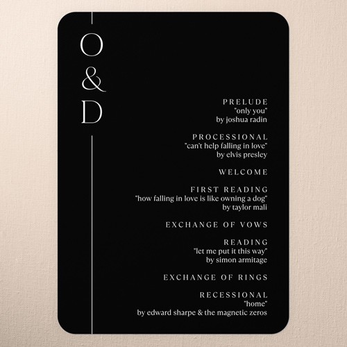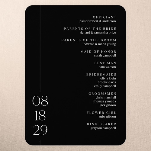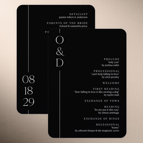 Share all the details of your big day with a personalized program that’s sure to impress your guests. It’s the perfect way to make them feel more a part of the ceremony. Select a program that coordinates with your invitations, RSVP cards, place cards and more.