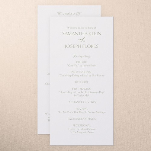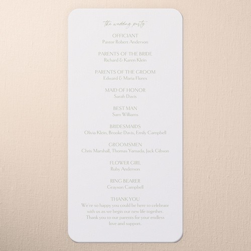 Share all the details of your big day with a personalized program that’s sure to impress your guests. It’s the perfect way to make them feel more a part of the ceremony. Select a program that coordinates with your invitations, RSVP cards, place cards and more.