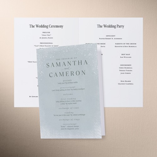 Share all the details of your big day with a personalized program that's sure to impress your, guests. It's the perfect way to make them feel more a part of the ceremony. Select a program, that coordinates with your invitations, RSVP cards, place cards and more.