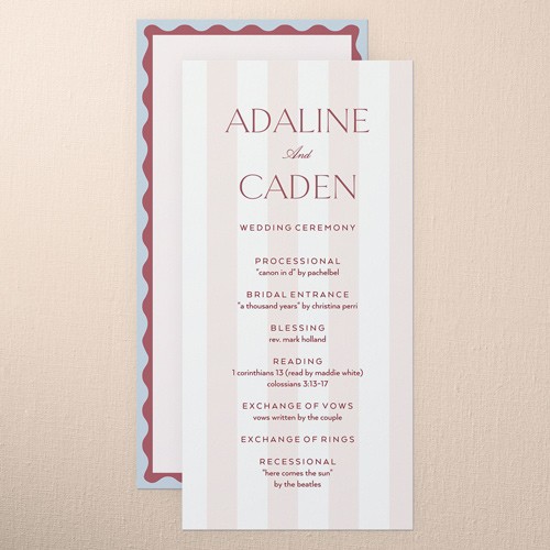 Share all the details of your big day with a personalized program that's sure to impress your, guests. It's the perfect way to make them feel more a part of the ceremony. Select a program, that coordinates with your invitations, RSVP cards, place cards and more.