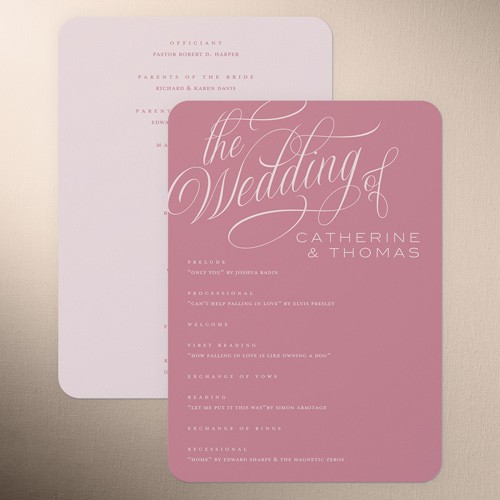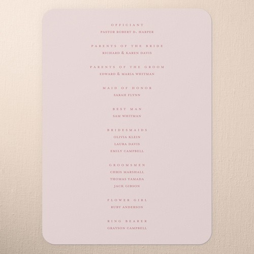 Share all the details of your big day with a personalized program that's sure to impress your, guests. It's the perfect way to make them feel more a part of the ceremony. Select a program, that coordinates with your invitations, RSVP cards, place cards and more.