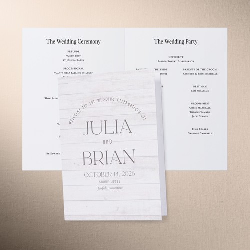 Share all the details of your big day with a personalized program that's sure to impress your, guests. It's the perfect way to make them feel more a part of the ceremony. Select a program, that coordinates with your invitations, RSVP cards, place cards and more.