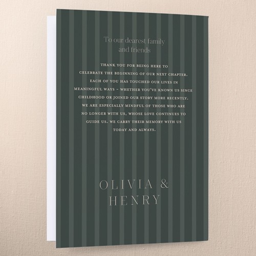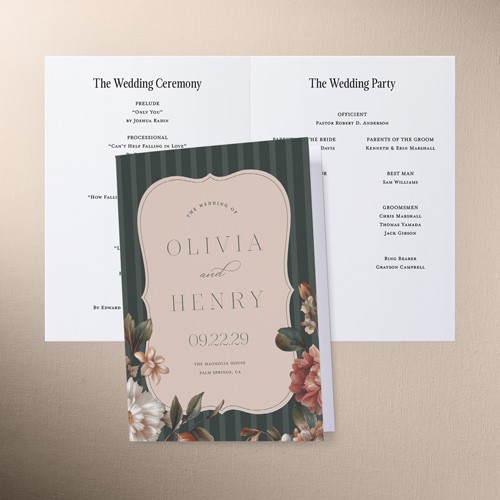 Share all the details of your big day with a personalized program that’s sure to impress your guests. It’s the perfect way to make them feel more a part of the ceremony. Select a program that coordinates with your invitations, RSVP cards, place cards and more.