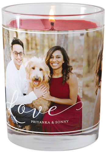 Make any space feel like home with a personalized glass jar candle that lights up your favorite photos from within. The candle is made with an all-natural soy blend and essential oils; available in four fragrances: Grapefruit Blossom, Ocean Breeze, Fireside Spice and Unscented. Personalize with a favorite photo or monogram. Candle comes packed in a gift-ready box.