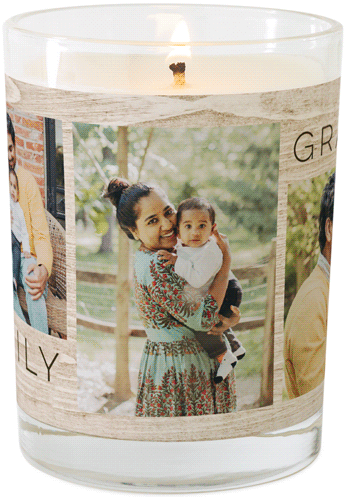 Make any space feel like home with a personalized glass jar candle that lights up your favorite photos from within. The candle is made with an all-natural soy blend and essential oils; available in two fragrances: Grapefruit Blossom and Fireside Spice. Personalize with a favorite photo or monogram. Candle comes packed in a gift-ready box.