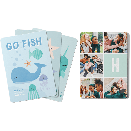Make game time extra fun with personalized card games, available in the classic children's games Go Fish and Crazy 8s. The cards can be personalized with photos and text on one side and feature whimsical illustrations on the other. Both games provide a fun and educational way for children to learn their numbers, work on strategy, and decision-making skills. Great for home play or use in the classroom. Treat the special kids in your life to a one-of-a-kind gift.