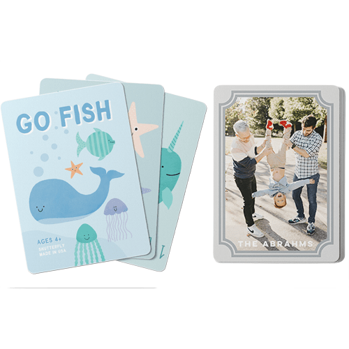 Make game time extra fun with personalized card games, available in the classic children's games Go Fish and Crazy 8s. The cards can be personalized with photos and text on one side and feature whimsical illustrations on the other. Both games provide a fun and educational way for children to learn their numbers, work on strategy, and decision-making skills. Great for home play or use in the classroom. Treat the special kids in your life to a one-of-a-kind gift.
