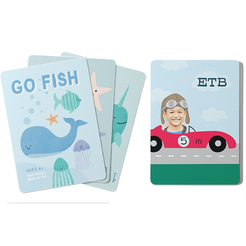 Make game time extra fun with personalized card games, available in the classic children's games Go Fish and Crazy 8s. The cards can be personalized with photos and text on one side and feature whimsical illustrations on the other. Both games provide a fun and educational way for children to learn their numbers, work on strategy, and decision-making skills. Great for home play or use in the classroom. Treat the special kids in your life to a one-of-a-kind gift.