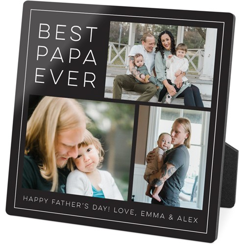 Showcase favorite photos and turn any space into a happy place with desktop plaques. Choose from different shapes, stylish backgrounds, and layouts for one or more photos for a unique look. Plaques include a built-in easel for horizontal or vertical display.