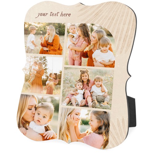 Showcase favorite photos and turn any space into a happy place with desktop plaques. Choose from different shapes, stylish backgrounds, and layouts for one or more photos for a unique look. Plaques include a built-in easel for horizontal or vertical display.