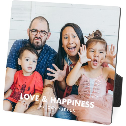 Showcase favorite photos and turn any space into a happy place with desktop plaques. Choose from different shapes, stylish backgrounds, and layouts for one or more photos for a unique look. Plaques include a built-in easel for horizontal or vertical display.