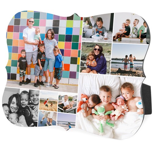 Showcase favorite photos and turn any space into a happy place with desktop plaques. Choose from different shapes, stylish backgrounds, and layouts for one or more photos for a unique look. Plaques include a built-in easel for horizontal or vertical display.