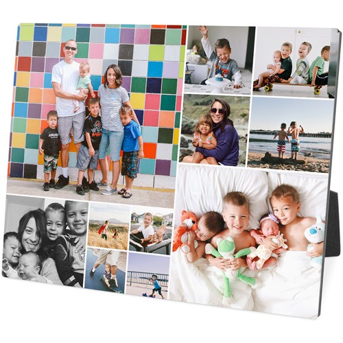 Showcase favorite photos and turn any space into a happy place with desktop plaques. Choose from different shapes, stylish backgrounds, and layouts for one or more photos for a unique look. Plaques include a built-in easel for horizontal or vertical display.