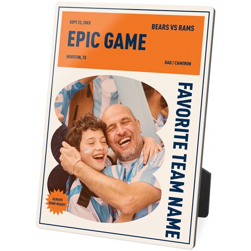 Showcase favorite photos and turn any space into a happy place with desktop plaques. Choose from different shapes, stylish backgrounds, and layouts for one or more photos for a unique look. Plaques include a built-in easel for horizontal or vertical display.