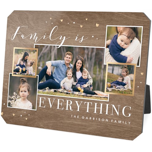 Showcase favorite photos and turn any space into a happy place with desktop plaques. Choose from different shapes, stylish backgrounds, and layouts for one or more photos for a unique look. Plaques include a built-in easel for horizontal or vertical display.