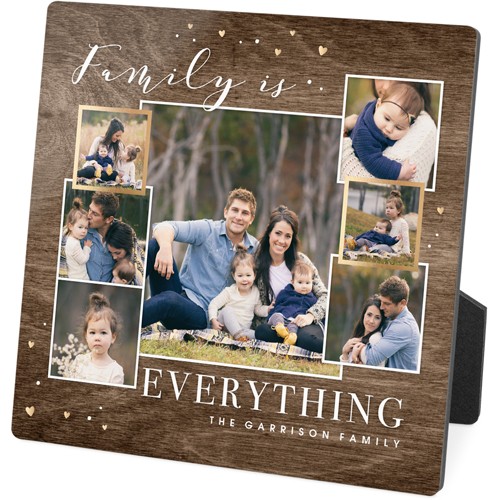 Showcase favorite photos and turn any space into a happy place with desktop plaques. Choose from different shapes, stylish backgrounds, and layouts for one or more photos for a unique look. Plaques include a built-in easel for horizontal or vertical display.