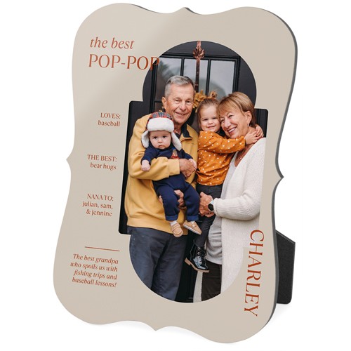 Showcase favorite photos and turn any space into a happy place with desktop plaques. Choose from different shapes, stylish backgrounds, and layouts for one or more photos for a unique look. Plaques include a built-in easel for horizontal or vertical display.
